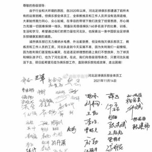 体坛周报全媒体原创 11月15日,一份来自困境中的河北队全体球员的请愿信见诸于网络。在这份请愿信中,河北队全体员工恳请...