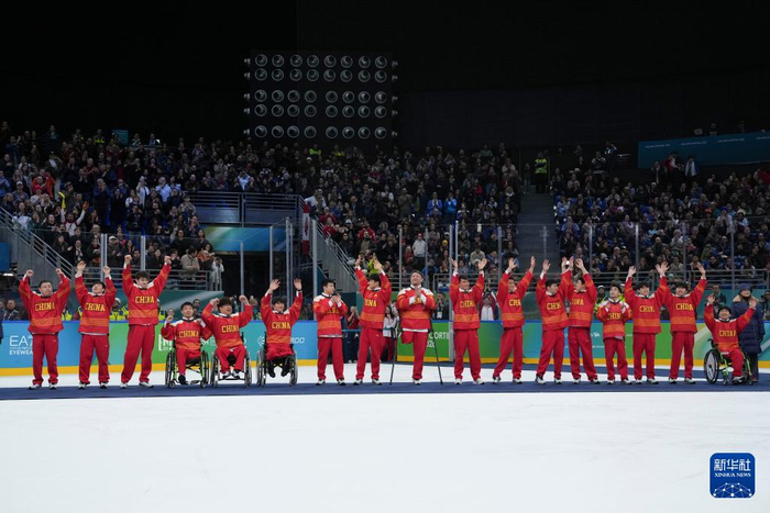 当地时间3月15日,在意大利米兰举行的米兰-科尔蒂纳冬残奥会残奥冰球铜牌赛中,中国队3比2战胜捷克队,夺得季军。
